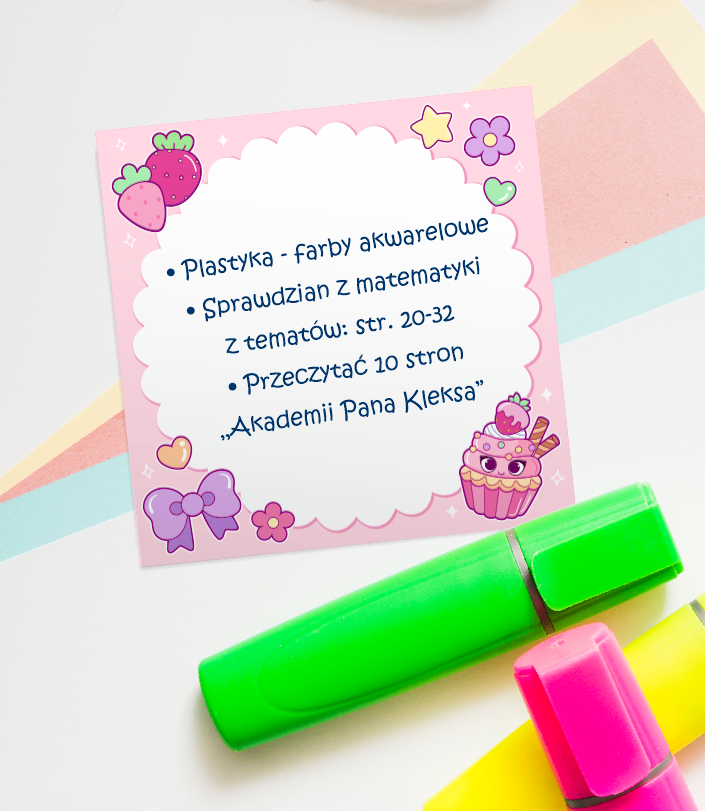 Blok 50 karteczek z ozdobną, kolorową ramką będzie świetnym upominkiem dla dziewczynki np. z okazji Dnia Kobiet lub Dnia Dziecka.
