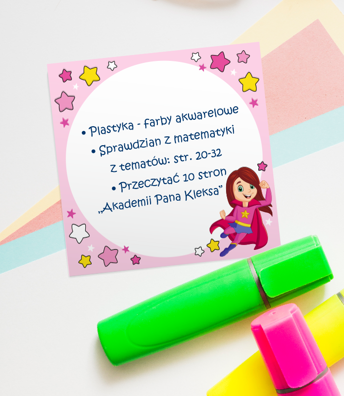 Blok 50 karteczek z ozdobną, kolorową ramką będzie świetnym upominkiem dla dziewczynki np. z okazji Dnia Kobiet lub Dnia Dziecka.