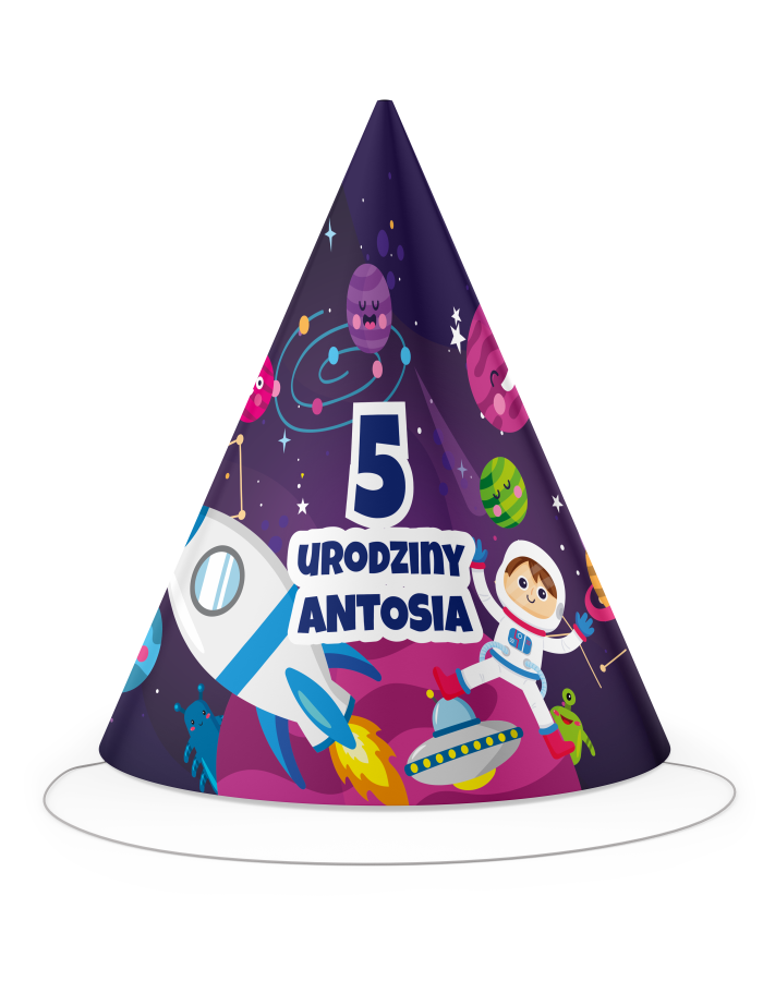 Komplet personalizowanych czapeczek urodzinowych KOSMOS