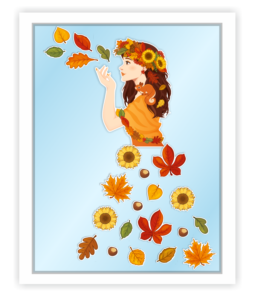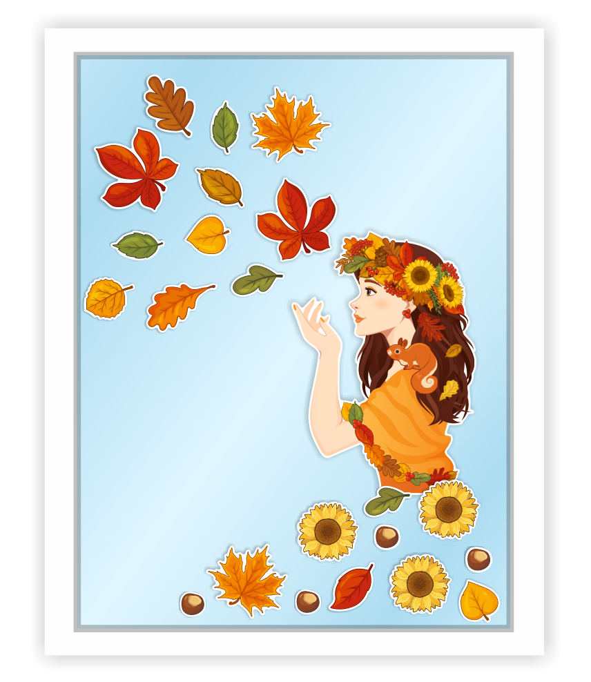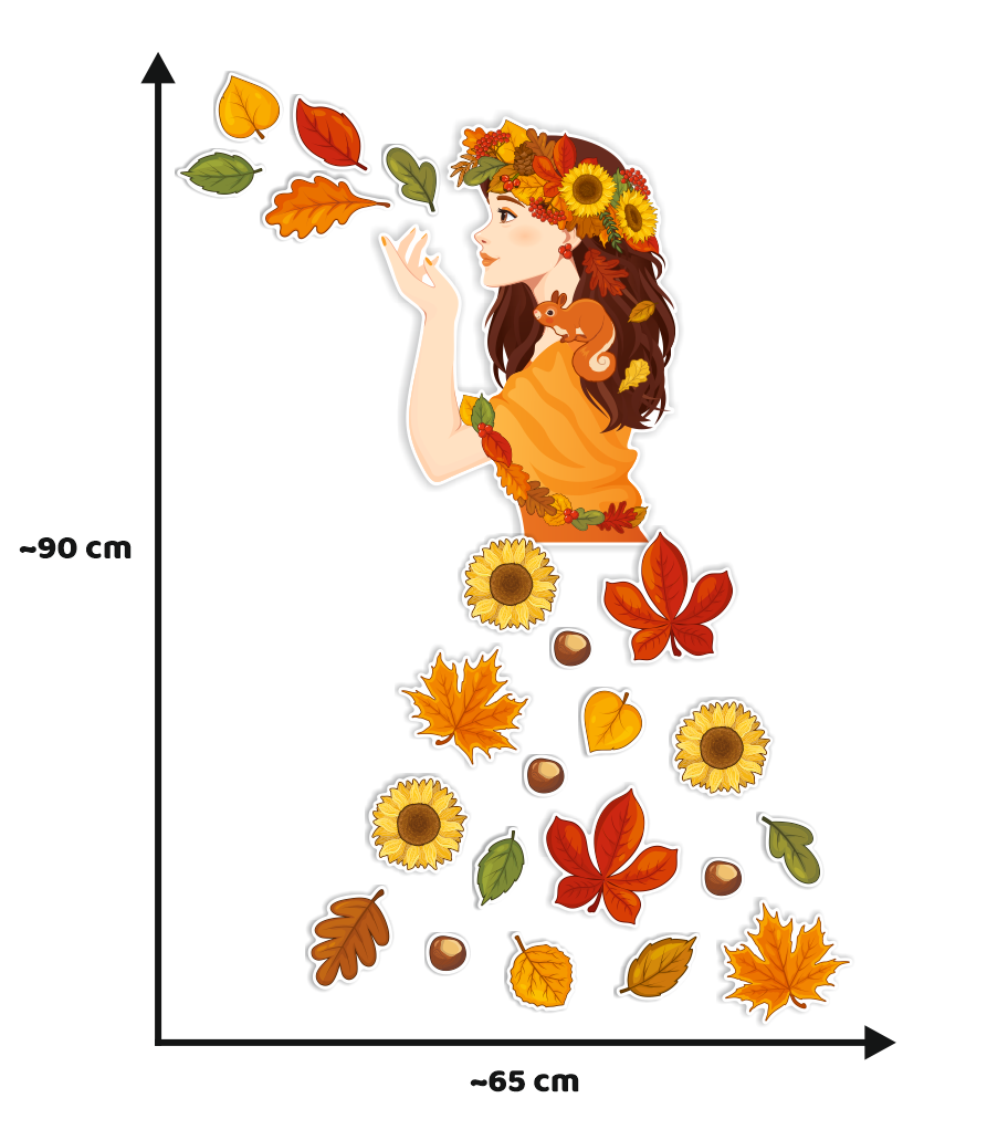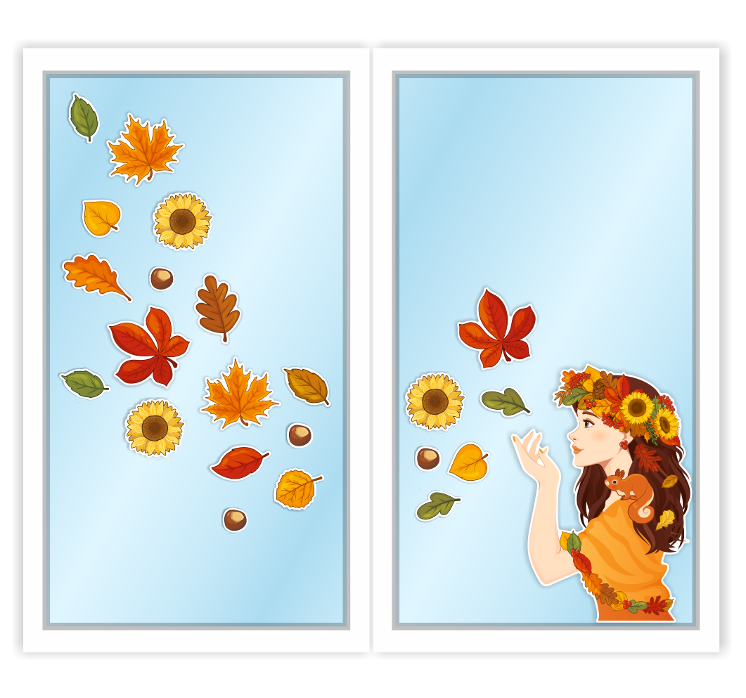 Dekoracja jesienna na okna "Pani Jesień" - wzór 4 (dwustronna)