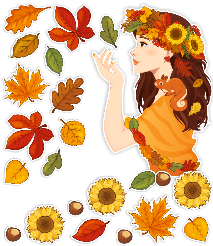 (23 elementy, duża postać Pani Jesień, do dowolnej aranżacji - dekoracja dwustronna)