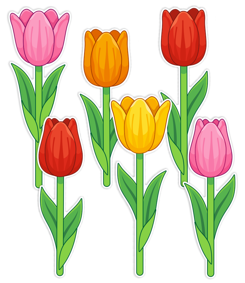Tulipany: ~12x38,5 cm (3 szt.); ~11x34 cm (3 szt.)