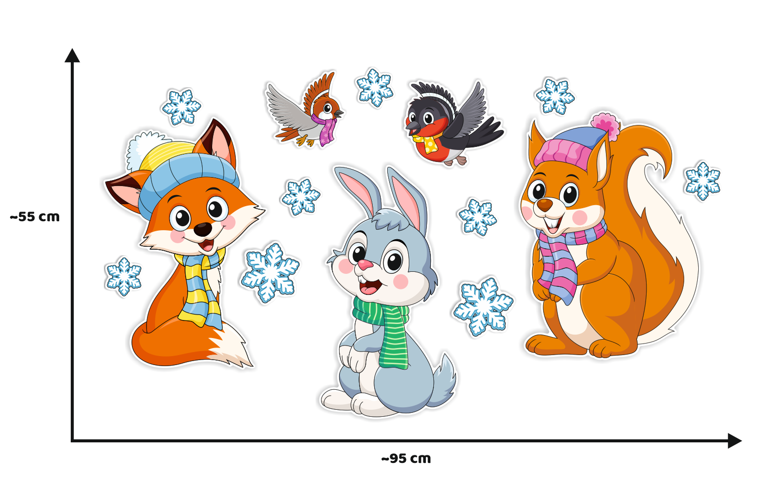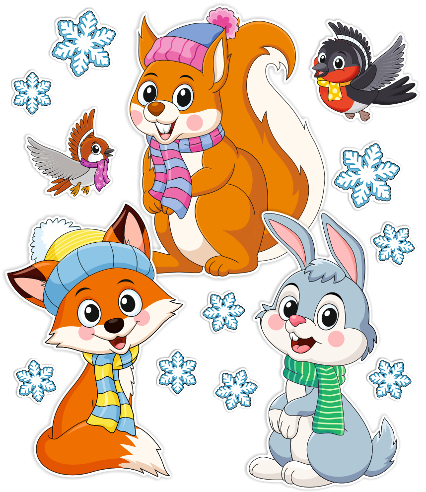 Dekoracja zimowa - DUŻE ZIMOWE ZWIERZĄTKA - wzór 2 (~A3, dwustronna)