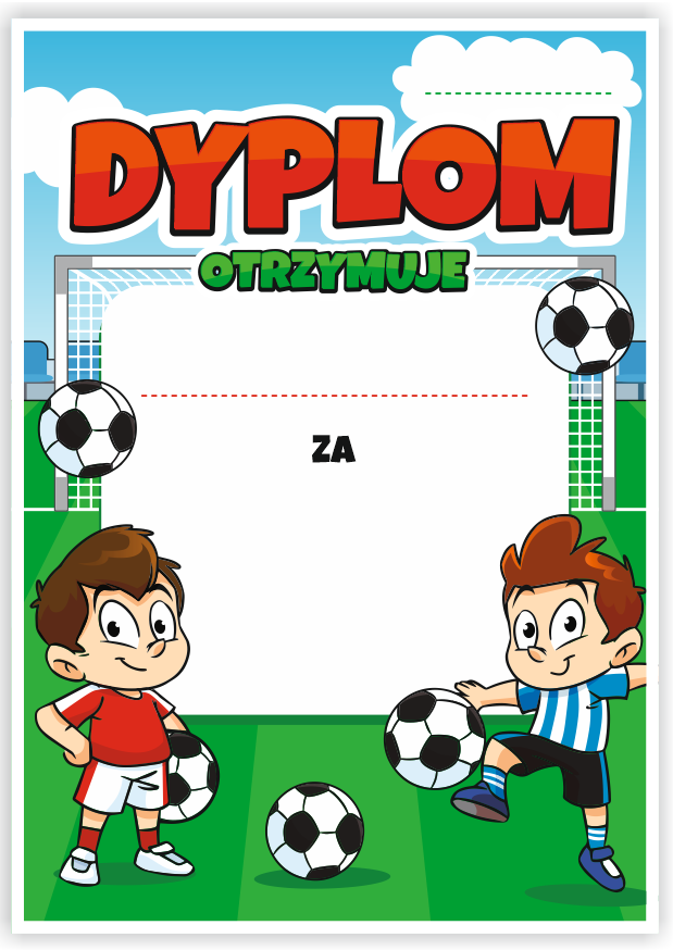 Kolorowy dyplom dla dzieci. Idealny dla szkółek piłkarskich, jako dyplom za czynny udział w zajęciach sportowych.