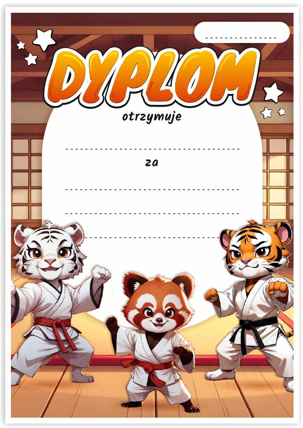 Kolorowy dyplom dla dzieci. Idealny dla dzieci trenujących sztuki walki, jako dyplom za czynny udział w zajęciach sportowych.