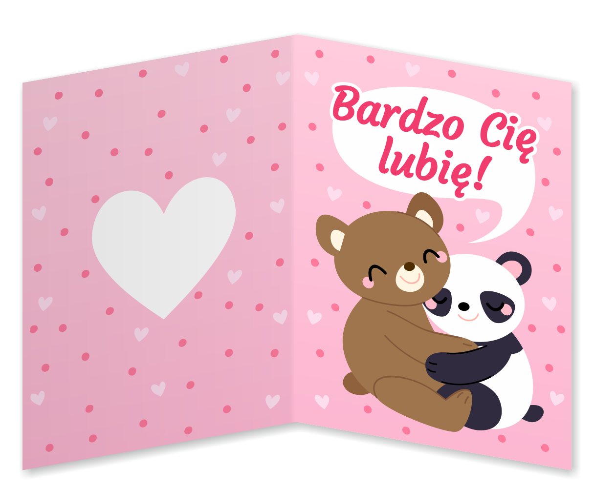 Kolorowa kartka z motywem walentynkowym, zadrukowana dwustronnie, w formie składanej książeczki będzie idealnym upominkiem do wręczenia np. z okazji Walentynek.
