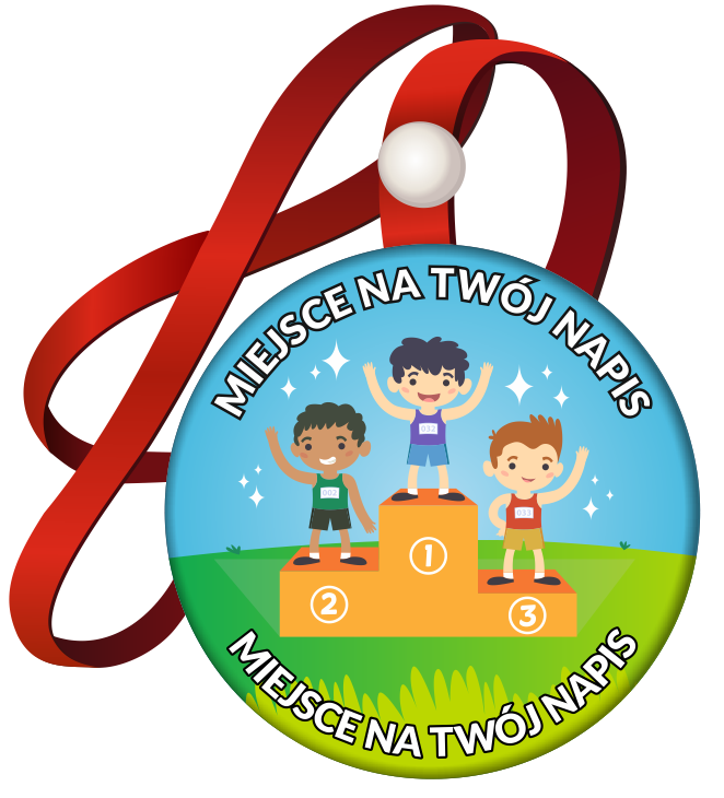 Napis górny może brzmieć "ZA ZAJĘCIE PIERWSZEGO MIEJSCA". Napis na dole może zawierać nazwę Twojej szkoły/przedszkola itp.