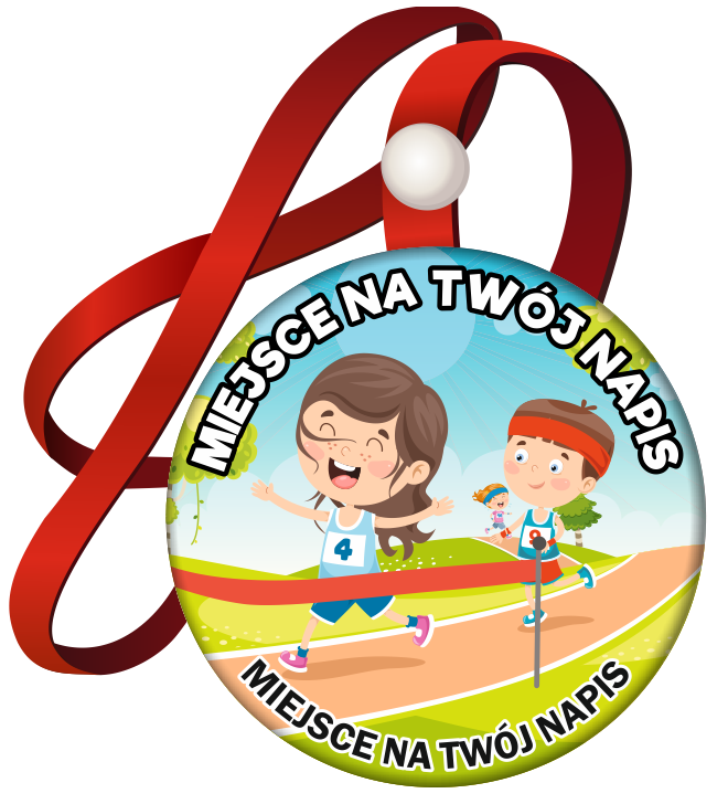 Medal na tasiemce: "Sportowy - biegnące dzieci" (wzór 4) + Twój napis
