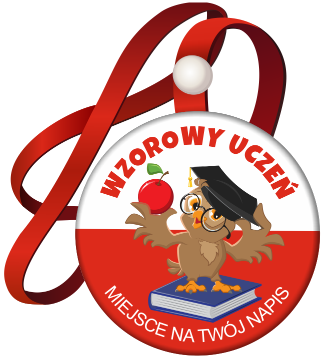 Medal na tasiemce: "Wzorowego Ucznia (Sowa 2)" + nadruk