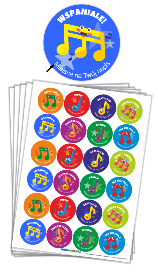 Naklejki "Muzyczne 5" (40mm, 120 szt.) z nazwą szkoły/przedszkola/grupy