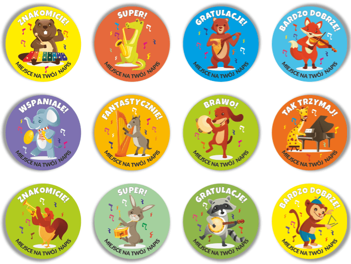Naklejki Motywacyjne "Muzyczne Zwierzaczki 3" (40mm, 120 szt.)