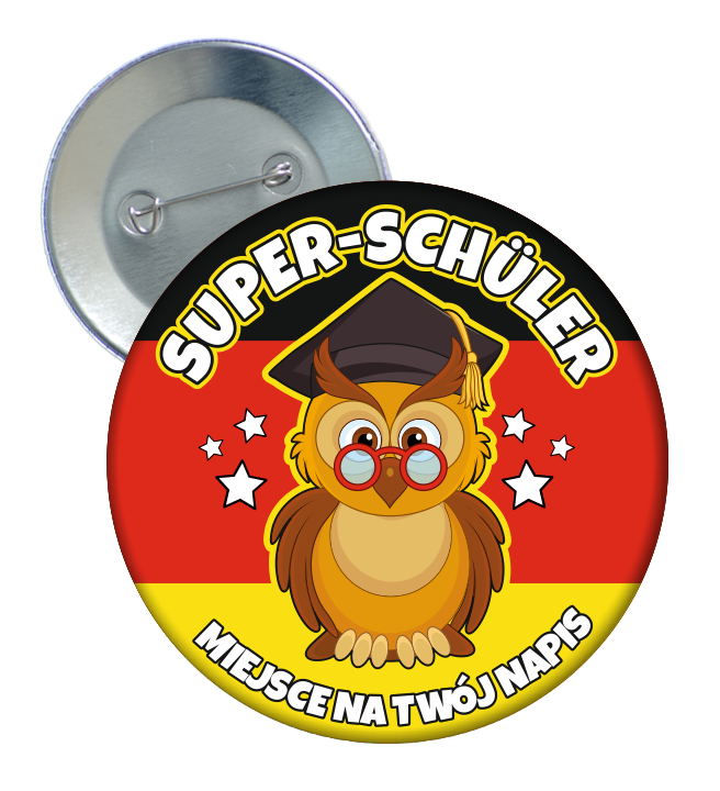 Przypinka idealna dla nauczycieli języka niemieckiego do nagradzania uczniów z nadrukiem nazwy szkoły, firmy itp.