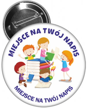 Przypinka uniwersalna z czytającymi dziećmi - idealna na imprezy i konkursy związane z czytaniem.