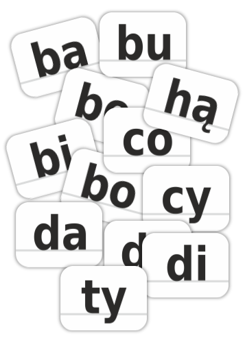 Zestaw aż 165 kartoników z sylabami otwartymi. Każdy o wymiarach 6x4,5cm. Przydatne podczas nauki czytania metodą sylabową oraz jako pomoc logopedyczna.