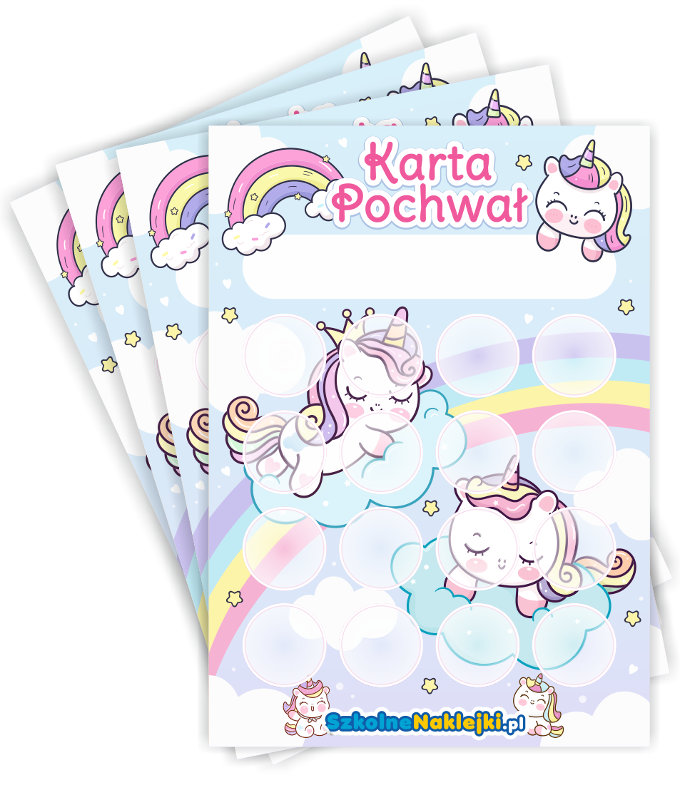 Zestaw 10 Kart Pochwał "Jednorożce" do zbierania naklejek