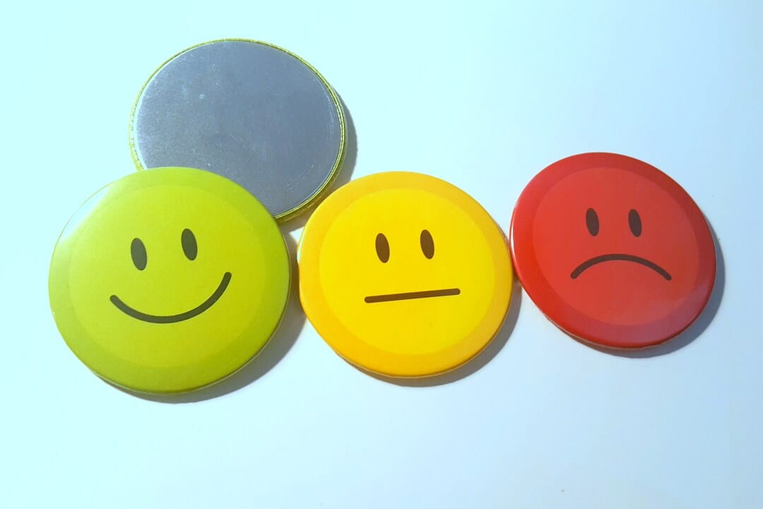 Zestaw zawiera magnesy z wzorem uśmiechniętej, średniej i smutnej minki. Magnesy w rozmiarze 58mm.