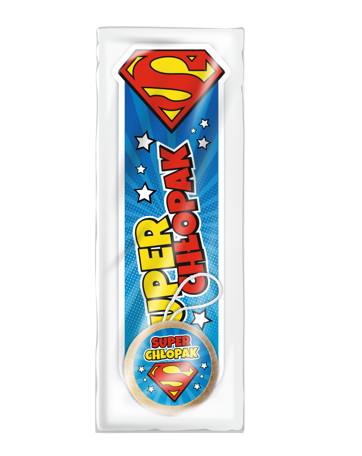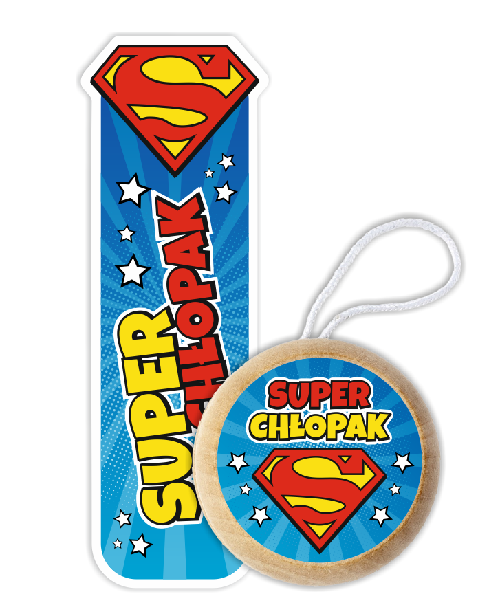 - jojo z kolorową naklejką z napisem "SUPERCHŁOPAK",